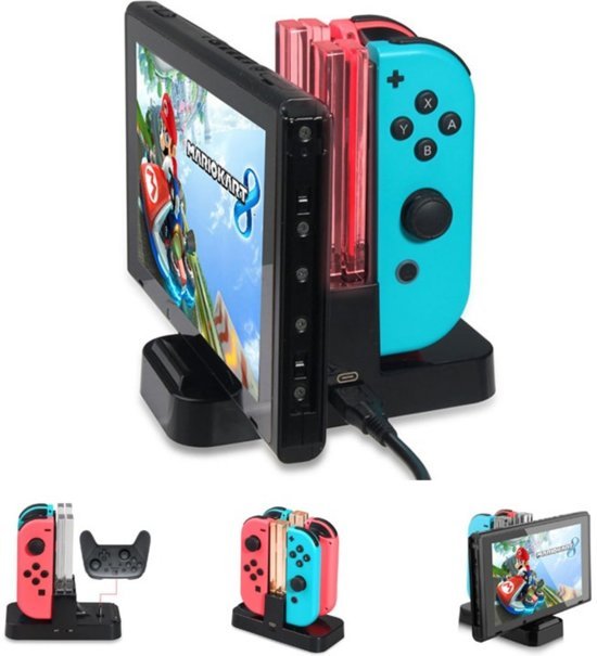 Op zoek naar een oplader voor je Nintendo Switch controllers? Dan is dit het geschikte product voor jou. Met wel ruimte voor 4 controllers, en de optie om een pro controller op te laden is dit oplaadstation compleet!