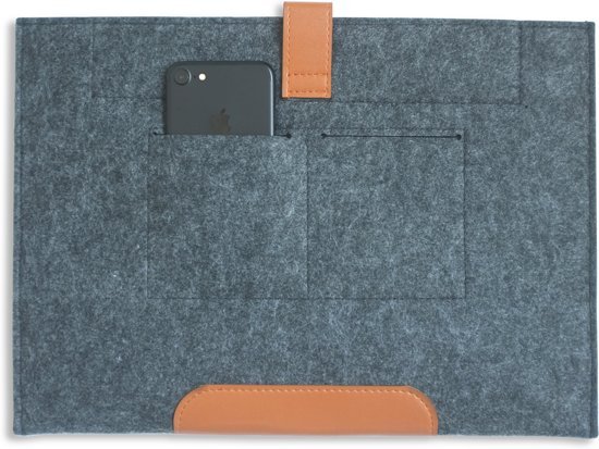 Verpakkingsinhoud: 1 x Dække Covers Vilten Laptopsleeve “Bælte” Donkergrijs voor Macbook 13 inch of 13 inch Windows laptop